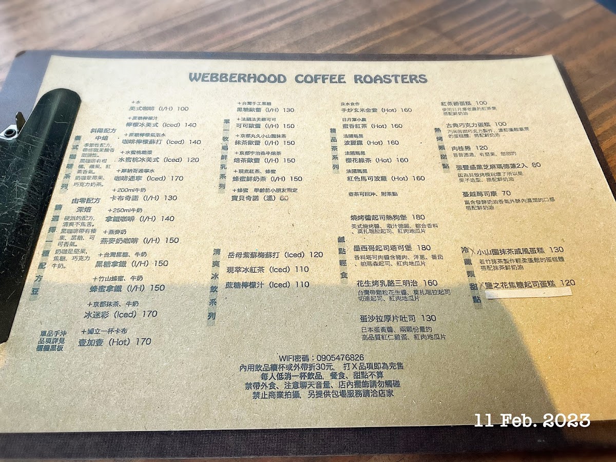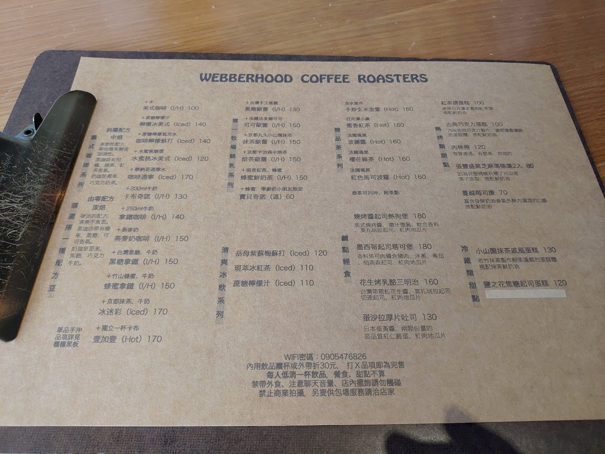 WEBBERHOOD COFFEE ROASTERS -無訂位 Menu